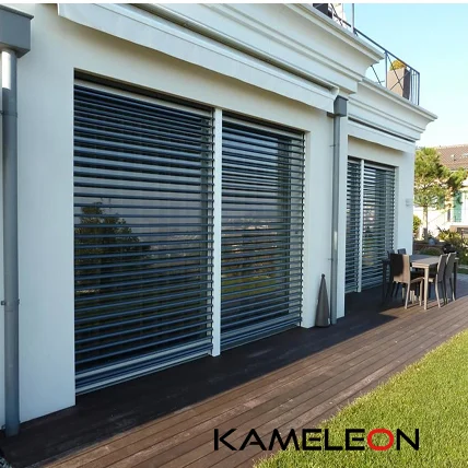 Jaluzele exterioare KAMELEON încastrate în tencuială — montaj ascuns, estetică curată și protecție eficientă împotriva soarelui și supraîncălzirii.