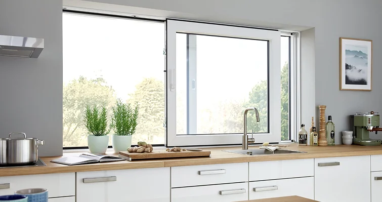 Такие окна особенно удобны для балконов, террас, панорамных фасадов и других помещений, где важно сэкономить пространство. Немецкие технологии Schüco и VEKA в сочетании с фурнитурой WinkHaus и Siegenia обеспечивают плавность хода, долговечность и комфортную эксплуатацию.