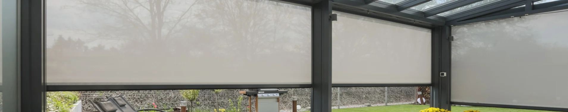 Скрин-зип KAMELEON Baros F — вертикальная система затенения с натяжением ткани, обеспечивающая защиту от солнца и ветра.