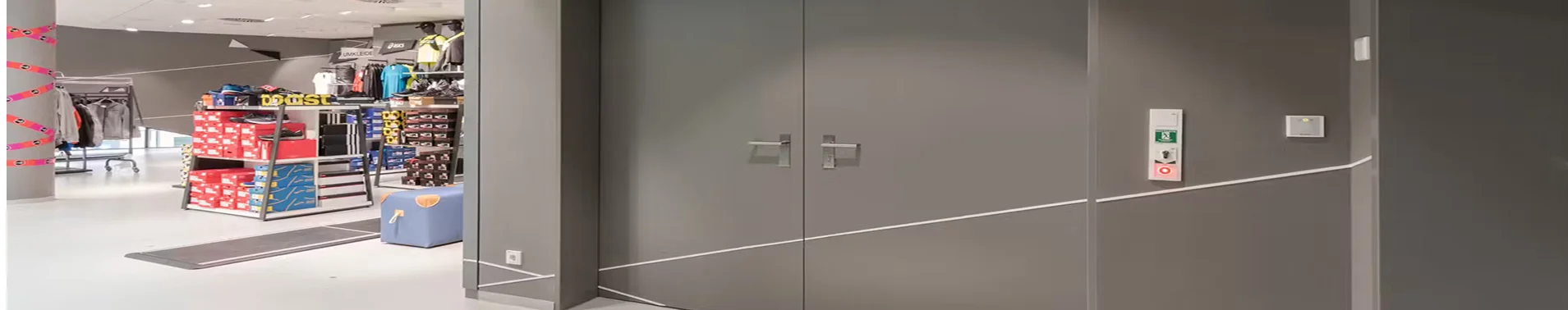 - Автоматизация и надежность работы — возможность интеграции с пожарной сигнализацией и датчиками дыма; автоматическое закрытие при возникновении пожара для защиты людей и имущества.