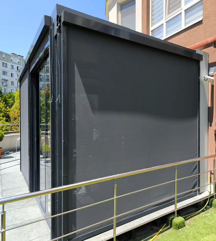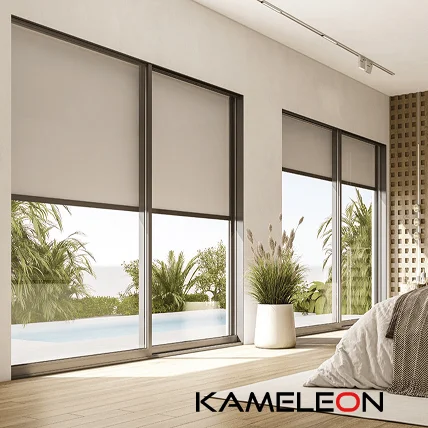 Realizate din textile tehnice de ultimă generație, rezistente la UV, ploaie și vânt, aceste sisteme contribuie la menținerea confortului termic și vizual. Pot fi acționate manual sau automat prin motorizări Somfy, cu integrare opțională a senzorilor de lumină, vânt și ploaie. Kameleon oferă variante personalizabile în funcție de dimensiuni, culori și transparență.